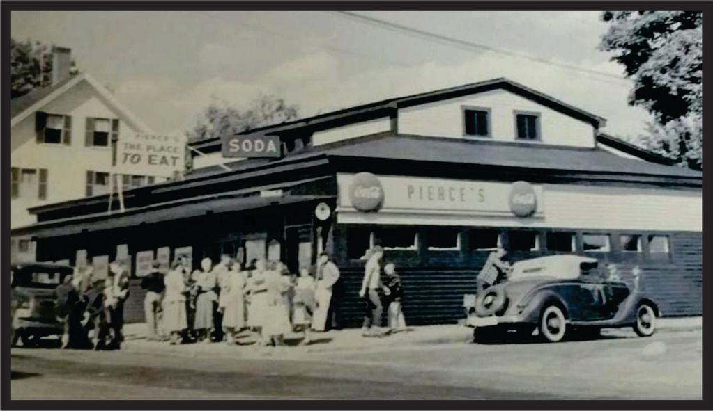 operating on this site for over 70 years. 1940s Mr. and Mrs. Leon Pierce operated a soda fountain here, reportedly the largest in the state. After Mr. Pierce's death, Mrs. Pierce continued to operate the business, which later consisted of a restaurant and candy/newspaper-store.