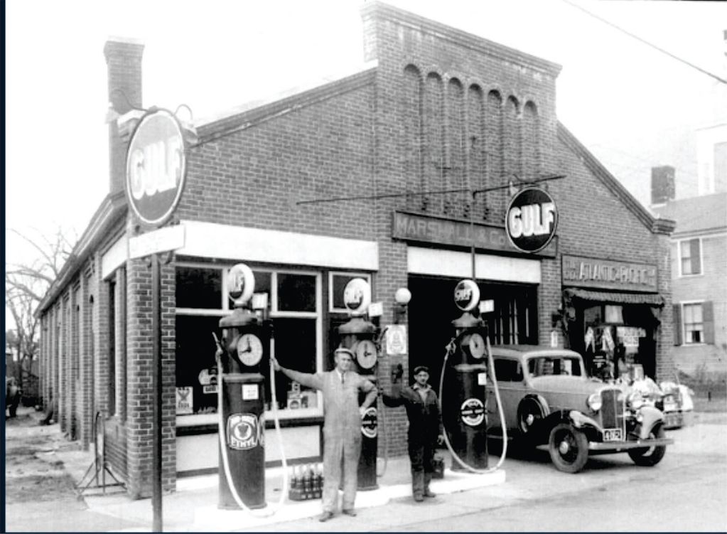 This single-story brick structure was constructed in 1919 as a garage and automotive showroom by Charles G. Barnard in 1919 on the site of a former tailor shop. As constructed the building had a cement floor and a 20-car capacity. The north section was later used as an Atlantic and Pacific (A & P) Tea Co. store, a beauty shop and veterinarian's office.